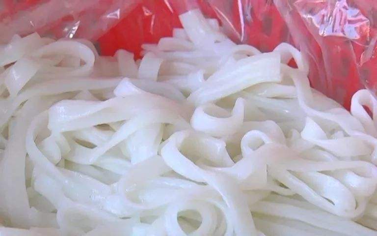 與尋常米粉不同,這種河粉呈現(xiàn)出扁寬的長(zhǎng)條形,與大多數(shù)米粉一樣,河粉的原料也是稻米。將稻米磨成漿后再用河粉機(jī)蒸成薄粉皮,然后切成條帶狀便成了河粉。河粉色澤雪白,看上去略微有些透明。