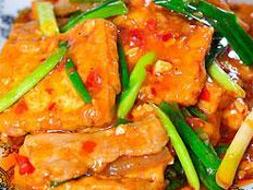豆腐吸收了肉香味和醬香味,再加上蔥香味兒,口感筋道,入味好吃。
